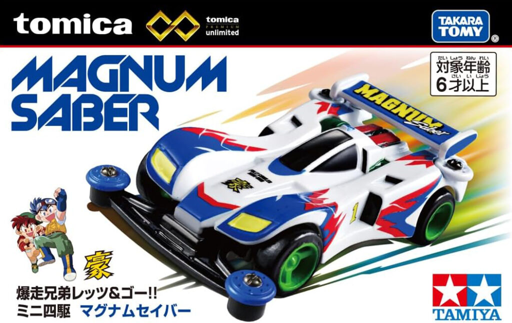 「どうせなら兄弟で揃えたい」という我々のコレクター心理を、タカラトミーとタミヤは完璧に理解しています。 むしろ、片方だけ買って満足できる精神力(アバンテ)を持っている方がいればそれは、、、ちょっと見習いたいくらい(笑) だいたいの人はソニックセイバーを手に入れたなら、このマグナムセイバーを隣に置くのは「義務」です。 さあ、今すぐ二台を並べて、あのOP曲『ウィニング・ラン!』を脳内(またはストリーミングで)再生しましょう。 「行け!マグナム!」と叫んでも、もちろん彼は飛び立ちません。 それでいい。それがいいんです。我々はもう、コースアウトでパーツを探し回る必要はないのですから。