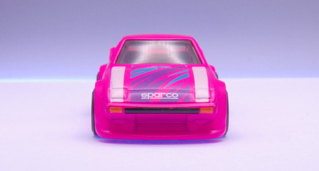このモデルは、2025年の「ネオン・スピーダーズ」シリーズ、Mix 2(全8車種)のうちの1台としてラインナップされました。 このシリーズの最大の特徴は、ブラックライト下で発光するような鮮烈なカラーリングと、レトロフューチャーなグラフィック。 「派手すぎて、飾っている棚から夜中に音楽が漏れてきそう」なほど、突き抜けたデザインが魅力です。