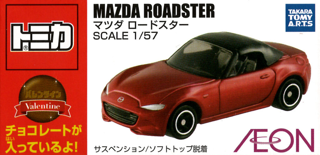2026年版の「トミカ付きチョコ」シリーズから、マツダ ロードスターをレビューしていきます。 バレンタインシーズンの甘い雰囲気とは裏腹に、ストイックなまでに走りのシルエットを追求したこの一台。それでは、イオン限定のバレンタイン トミカを見ていきましょうっ!
