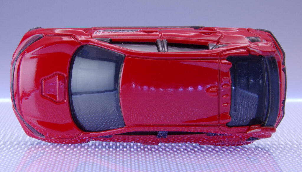 トップ:ルーフラインは実車の流れるようなフォルムをしっかりと再現。色合いは暗めのレッドになっており、ずっしりとした印象になっています。