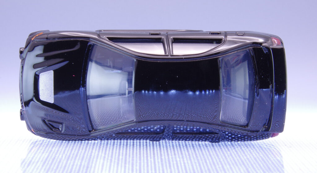 上から見ると、ボンネットのダクトやルーフラインがしっかり作り込まれているのがわかる。ボトム側は簡易的ながらもディテールが入っている