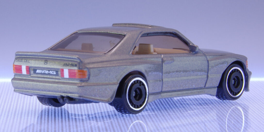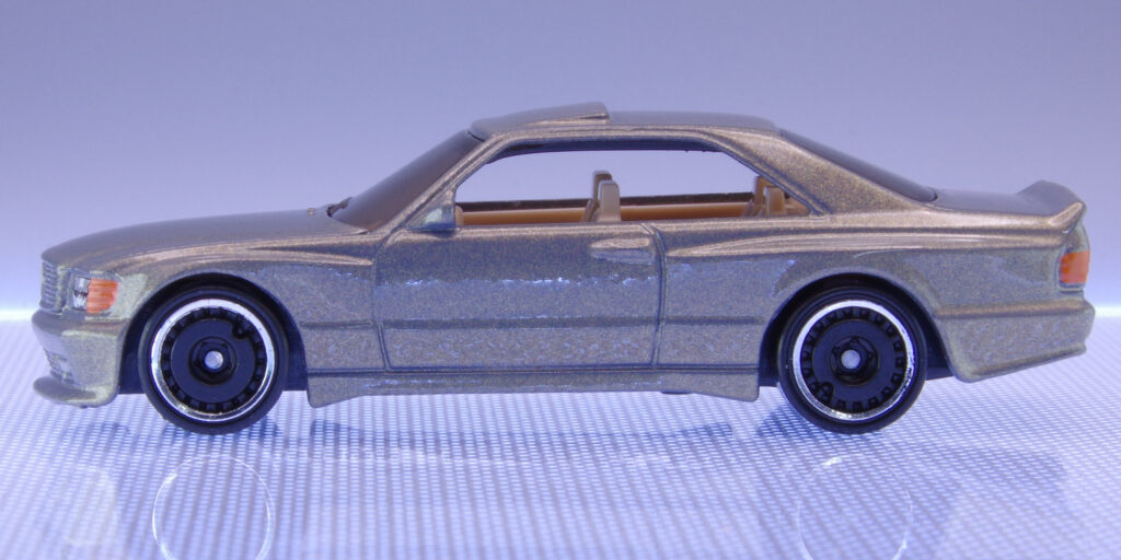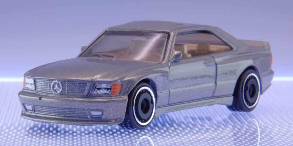 80年代後半から90年代にかけて、高級クーペ市場を席巻したのが「メルセデス・ベンツ 560 SEC AMG」。堂々たるサイズとラグジュアリー感、そしてAMGチューンによるスポーティさを兼ね備えたドイツ車の名車です。Hot Wheelsからはベーシックカーとしてこのモデルが登場。威厳あるボディと精悍な顔つきを楽しめる1台となっています。黒色は瞬殺の人気となったモデル!!詳しく見ていきましょう!