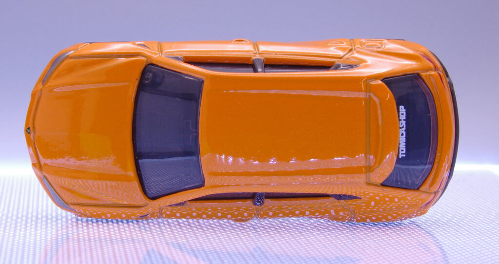 上から見ると、ボンネット~ルーフ~リアゲートへ連続する“面のうねり”が映えます。底面の造形もそれなりに入っています。