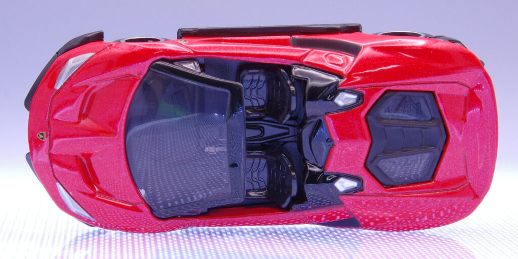 実車のチェンテナリオはアヴェンタドールをベースに、空力重視のボディとハイパワーV12を与えられた記念モデル。ランボルギーニの創設者である フェルッチオ・ランボルギーニ の生誕100周年を記念して世界限定40台(クーペ20台、ロードスター20台)で製造されたスーパーカー。今回のイベントモデルではロードスターを1/65スケールでモデル化しています。