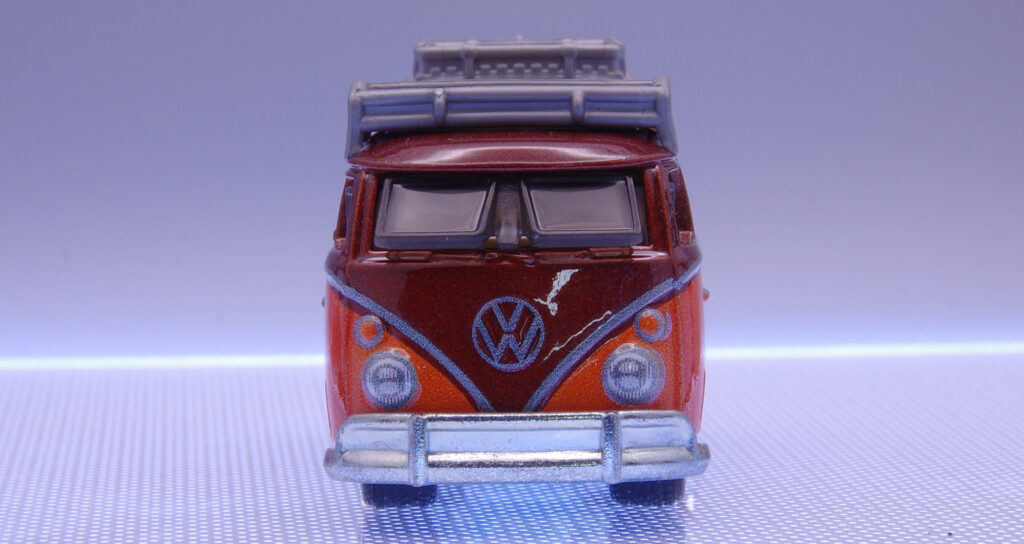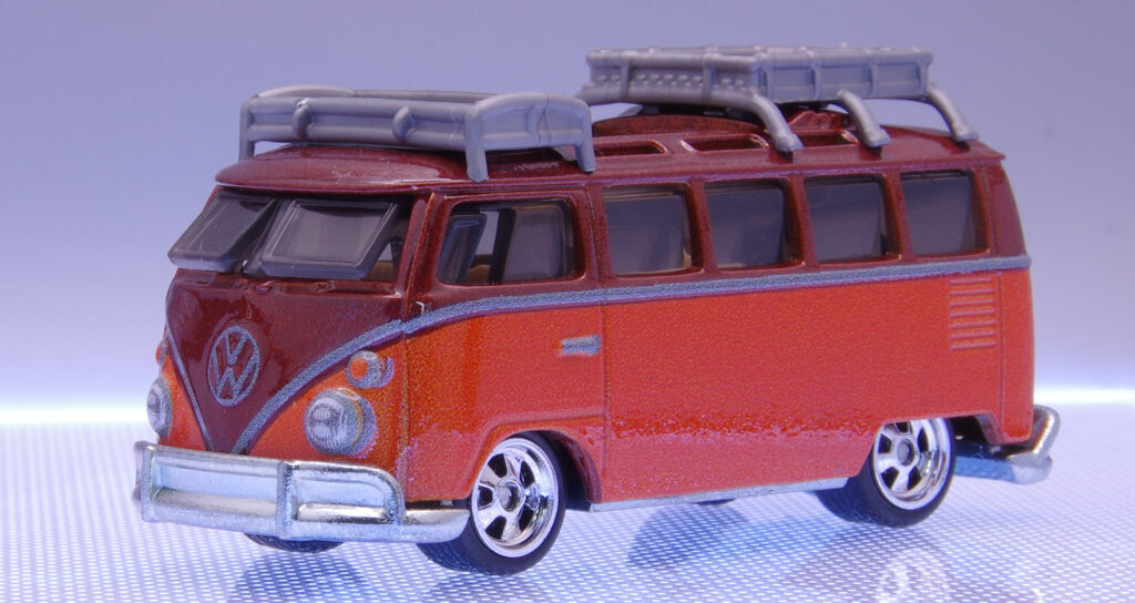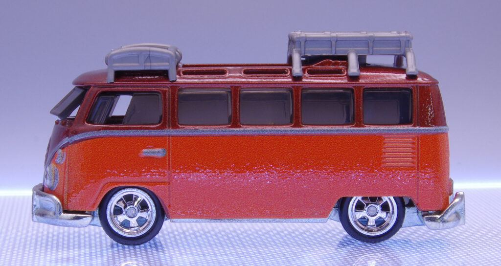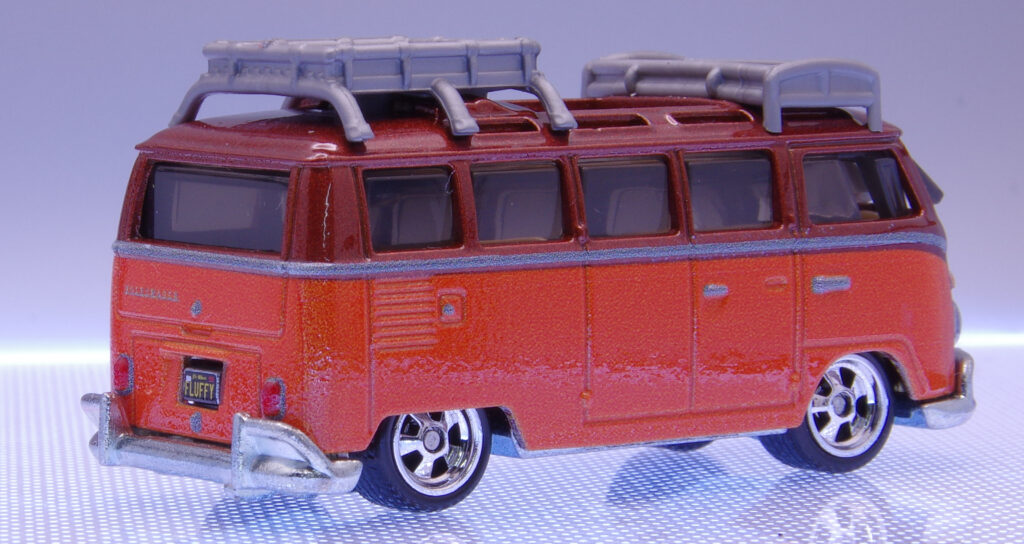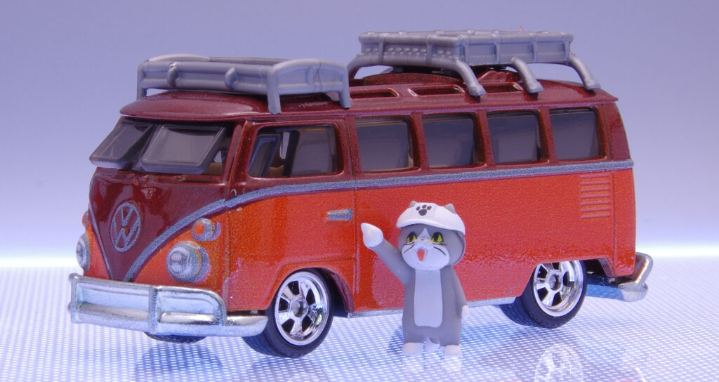 メインのシルエットはそのまま、足まわりと色のさじ加減で一気にホットウィールらしさが出てくる感じ。いつものワーゲンバスでしょと言っても、そこはやはり人気どころの車種。コレクション棚に置けば、派手色マッスルの横でも、淡色ユーロの隣でも、空気を明るくして列を整えてくれます。そして人気どころゆえに、色々なモデルが出ているのでカラーバリエーションや他のメーカーの物と並べても良き。発売当時、もっと人気になるかなと思ってましたが、意外とそうでもなかったのは少し意外でした。今でも、売っている所をたまに見かけるので、もし良ければコレクションに加えてみてはどうでしょう?