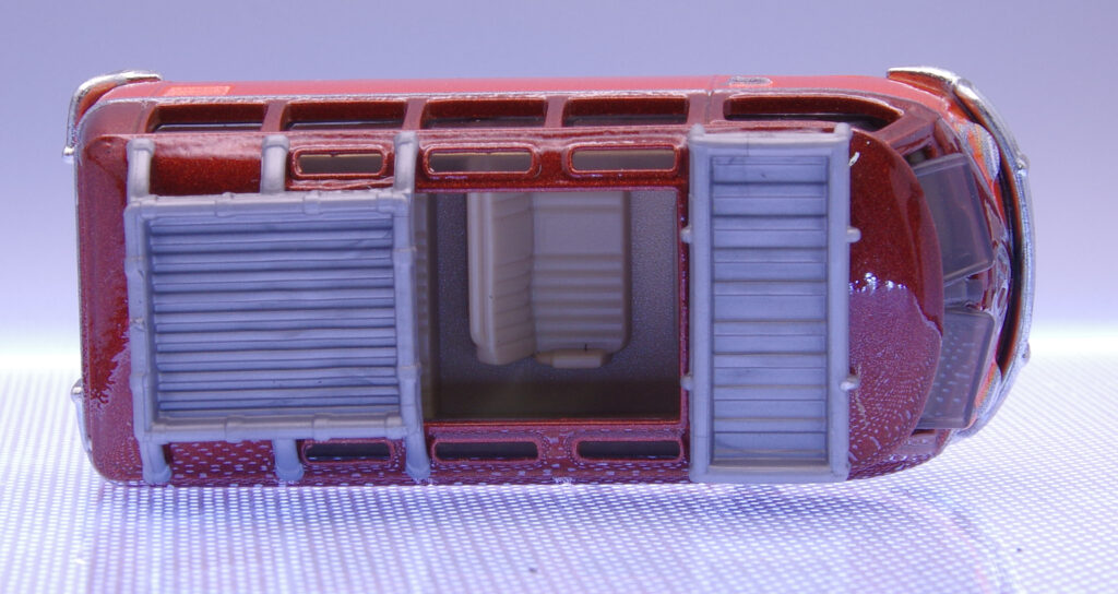 実車のサンババスはタイプ2(T1)系のデラックス版。特徴は分割フロントウインドーと小さなスカイライト窓、そして大きなスライディングルーフ。リアに空冷水平対向を積むRRで、ゆったり走って“景色を楽しむ”のが似合う。1967年はT1最終期の年式で、翌年からはT2へバトンタッチする節目でもある。