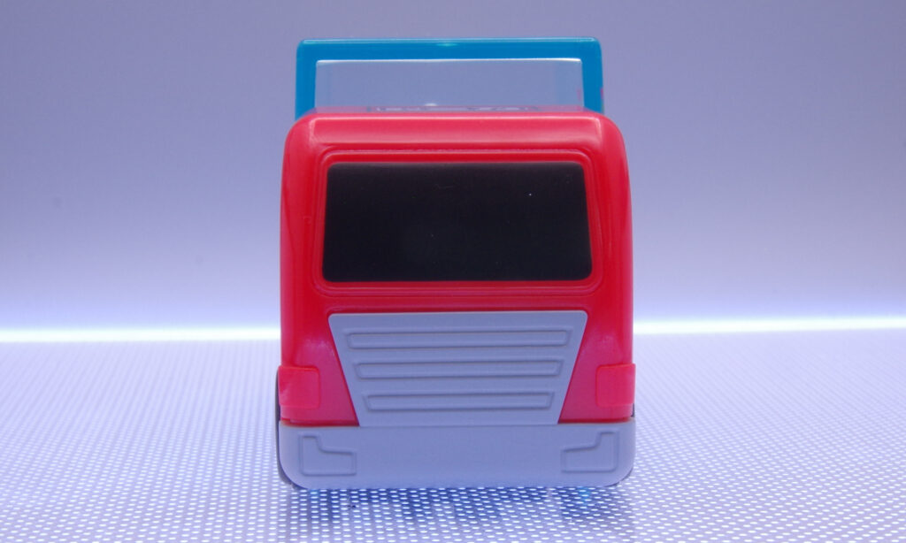 キャブはシンプルで見やすい顔つき。大きなフロントガラスと低いバンパーで、実車のトラックらしい“働く道具感”がちゃんと出ています。ガラスの黒い部分はシールではなく、最初から印刷されているのも嬉しい所。