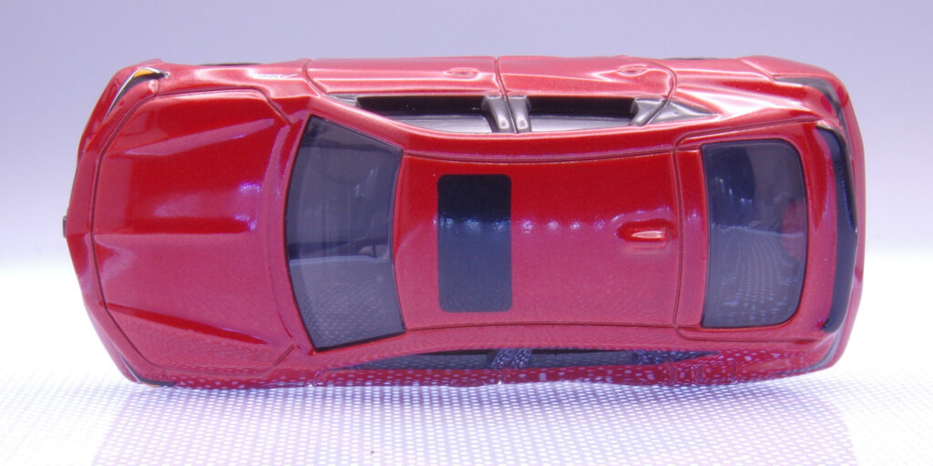 ファストバックの緩い傾斜と、フェンダーの控えめな張り。線を増やさず面で語る造形なので、光を当てて眺めると気持ちよく流れます。ガラス類はスモークがかった仕様になっています。