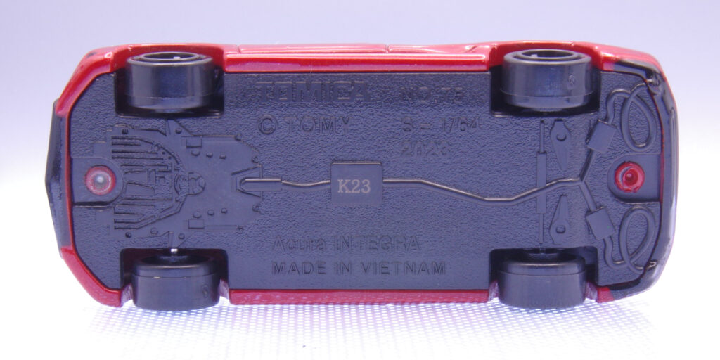 ホンダ車のインテグラと聞いて思い浮かべるのはスポーツカーですが、アキュラブランドで発売されたこのインテグラはどちらかといえば端正なセダン。初回特別仕様ではレッド・通常版はブルーでのラインナップ。日本では、ほぼ見かけることがない車種ですがミニカーなら、間近で見られます!珍しいアキュラブランドのトミカを詳しく見ていきましょうっ。